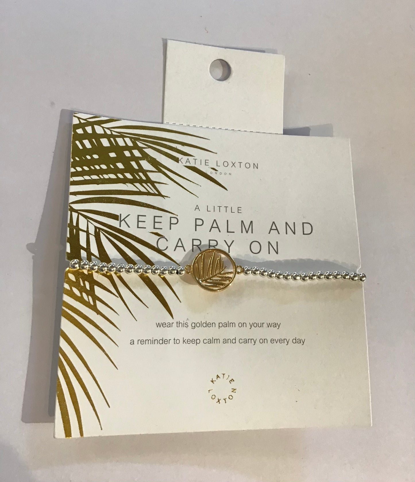 Wear this golden palm on your way, a reminder to keep calm and carry on every way.