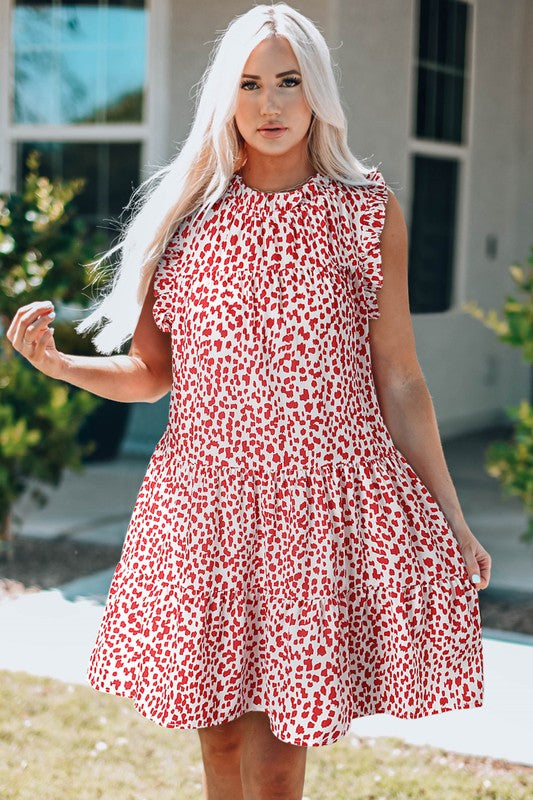 Leopard Frilled Tank Dress Weight About : 0.36 kg Style casual Pattern leopard Sleeve Length sleeveless