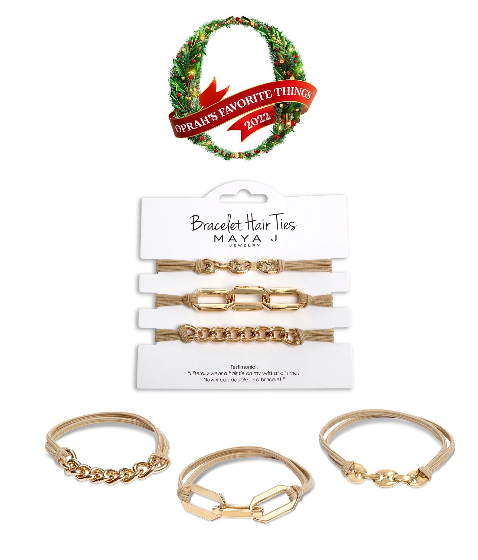 Maya J Jewelry takes two things we love to wear on our wrists, hair ties and trendy bracelets, and combines them into one fashionable jewelry accessory - Bracelet Hair Ties! It’s a must-have, perfect for the upcoming holidays and the ideal stocking stuffer! It’s a piece that everyone is sure to love and actually use, easily mixed and matched with other bracelets you already own. At an affordable price, it’s great for all ages, arriving on a beautiful card of three designs. You’ll soon want to wear one on your wrist at all times!