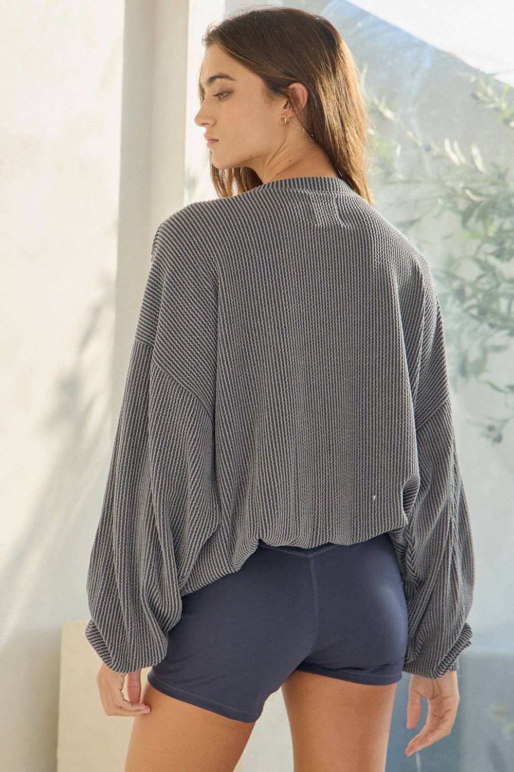 OHIO' Print Ribbed Oversized Graphic Sweatshirt