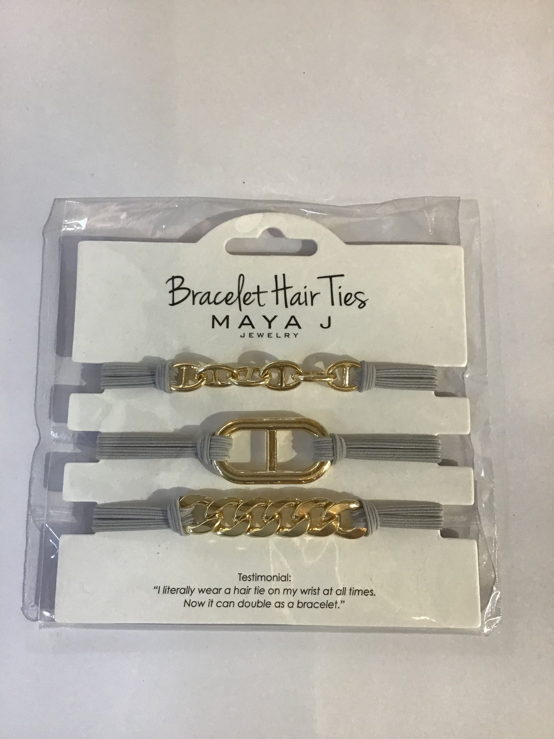 Bracelet Hair Ties - Gold Metal Grey Elastic Cord