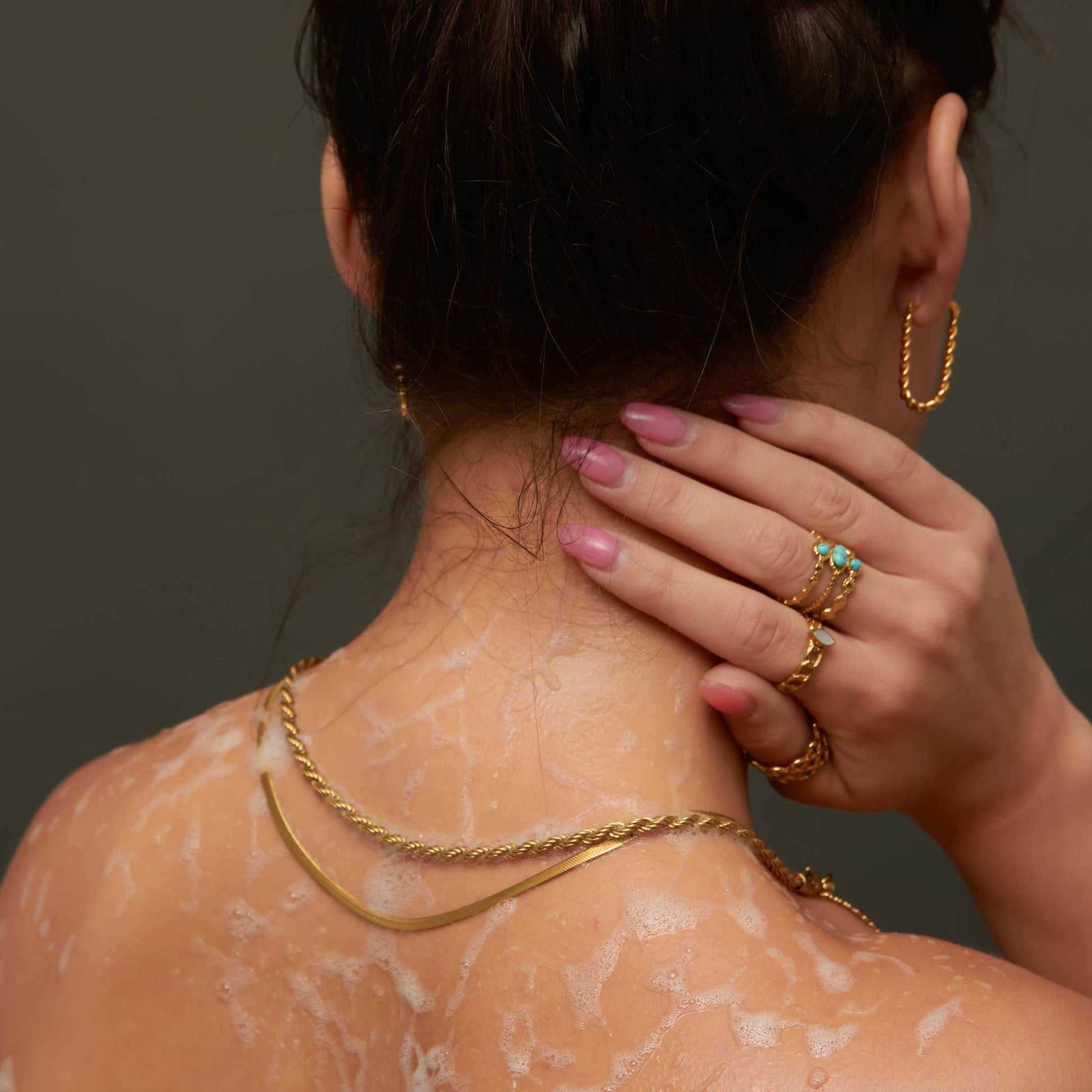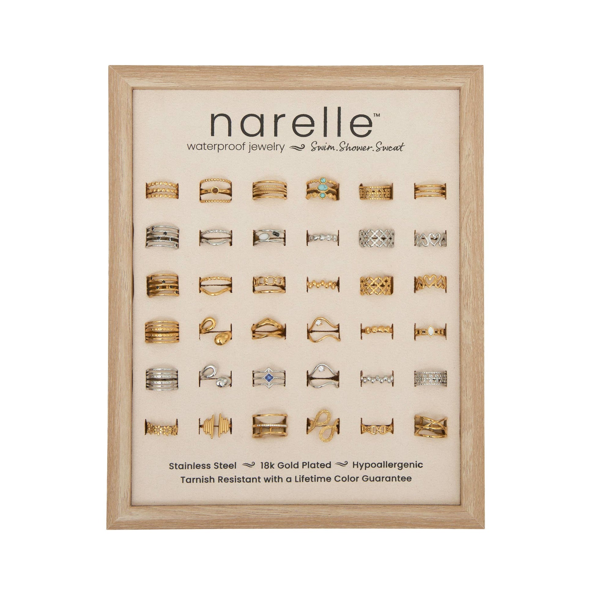 Includes radiant 18K gold-plated ring and some sleek stainless steel styles—each one hypoallergenic, tarnish-resistant, and finished with our signature PVD waterproof coating. Designed to be worn through swim, shower, and sweat, every ring is fully adjustable to comfortably fit standard ring sizes 5 to 9.