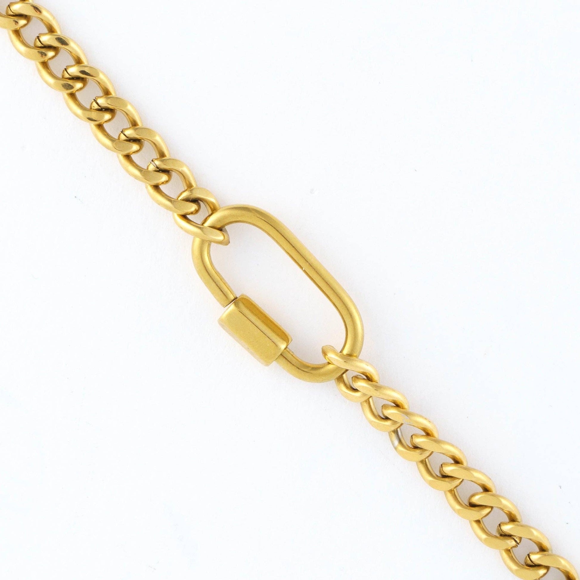 A modern take on a classic, the Narelle Waterproof Carabiner Necklace offers a delicate chain with functional carabiner in a classic gold or silver. Designed to create an effortlessly chic and minimalist look, this waterproof necklace is the perfect finishing touch. Waterproof, 18K gold or Stainless Steel plated and made with a specialized PVD technique to withstand the rigors of life, from swimming and showering to sweating through your most intense workouts, all without ever losing its shine.