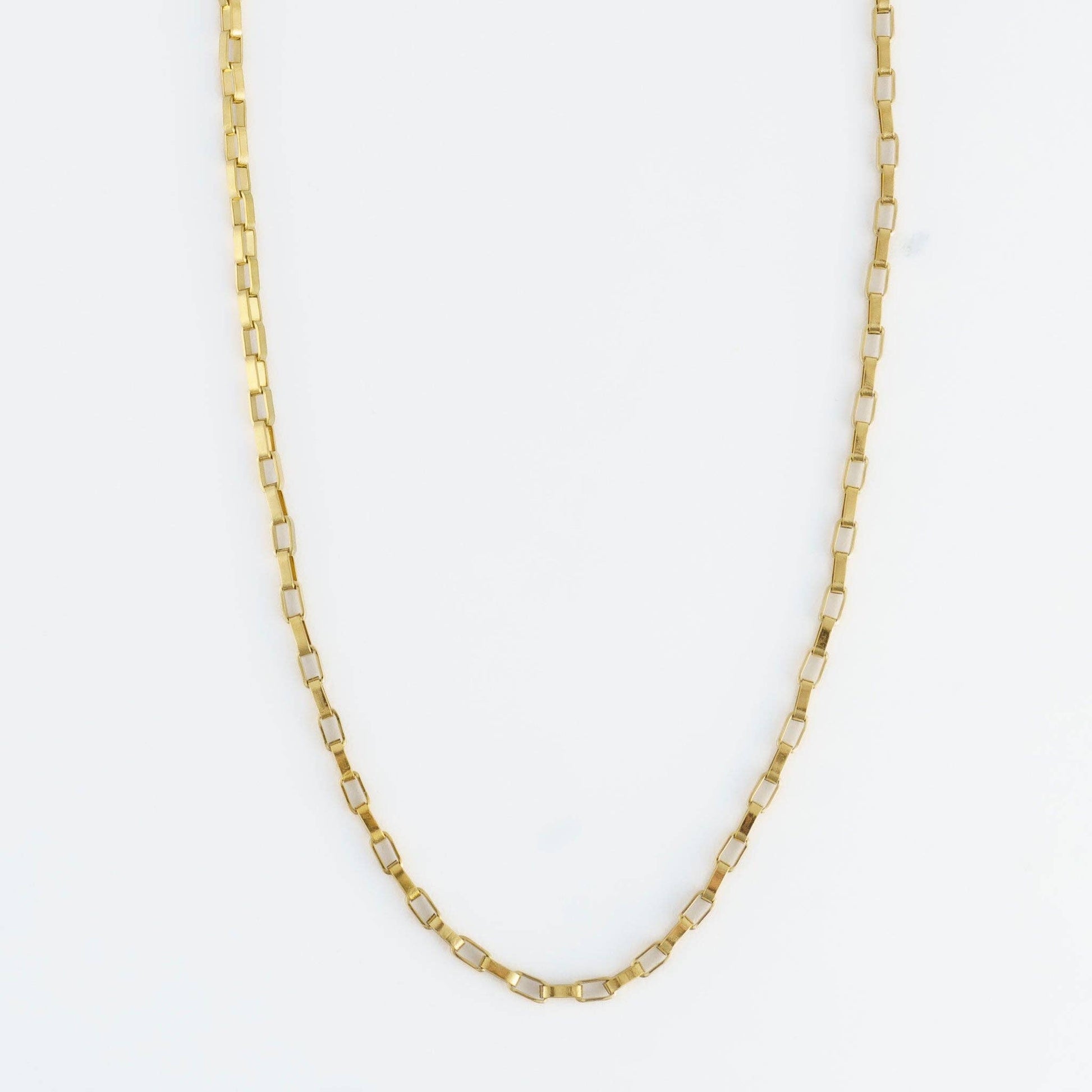 A modern take on a classic, the Narelle Waterproof Box Chain Necklace offers a chunky box chain in a classic gold or silver. Designed to create an effortlessly chic and minimalist look, this waterproof necklace is the perfect finishing touch. Waterproof, 18K gold or Stainless Steel plated and made with a specialized PVD technique to withstand the rigors of life, from swimming and showering to sweating through your most intense workouts, all without ever losing its shine.