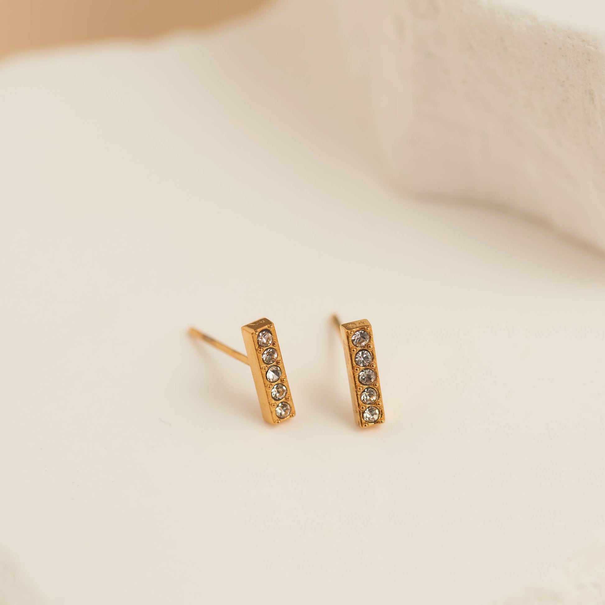 Howard's - Waterproof Earrings Crystal Bar Studs with Glass Gemstones