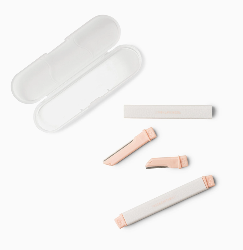 This popular product is the ouch-free way to remove peach fuzz and shape brows without painful waxing or plucking. A guard while storing and handle while in use, each wand conceals two sizes of single-blade, skin-safe razors (one mini, one regular). A handy case and small size make this item the perfect travel purchase! Easy-to-use facial razors for removing peach fuzz, shaping eyebrows & gentle exfoliation Each wand (2 per pack) holds 1 large razor & 1 small razor Handy travel case included Merchandising Details: Carded and peggable Ships in a free counter display