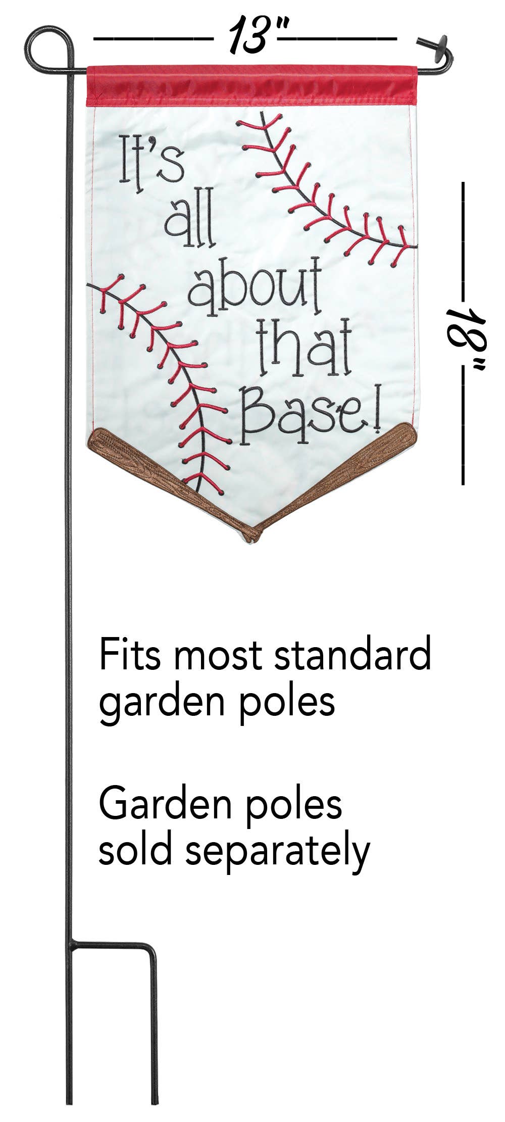 Double sided applique flags are double thickness, readable on both sides. They are heavier than most flags on the market and will hold up longer. They have detailed stitching and a combination of appliqueed fabric and embroidery stitch. 13" x 18" H.