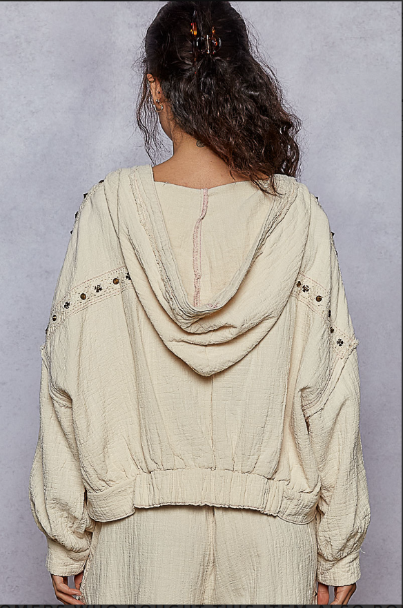 Experience comfort and style with this regular fit balloon sleeve hoodie top crafted from soft double gauze fabric. Its relaxed silhouette and unique balloon sleeves offer a trendy look, while the front pockets add practical convenience. Perfect for casual days, this hoodie combines breathable material with functional design to keep you comfortable and effortlessly chic.