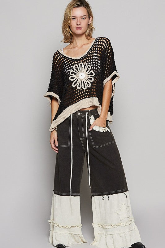 Pol Round neck sleeveless floral thin sweater top