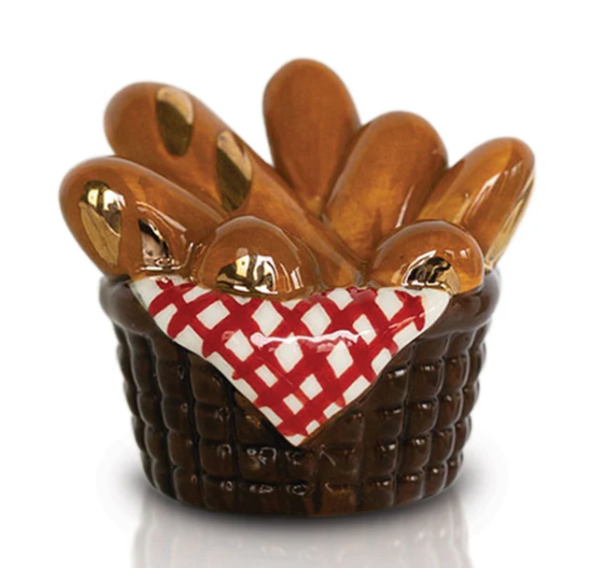 a cozy basket brimming with enticing bread in a red gingham napkin.