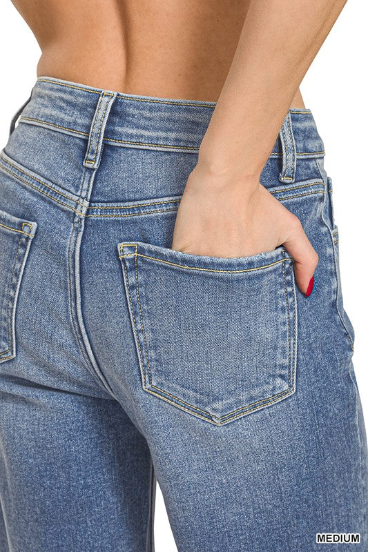 Introducing the ZENANA High Waisted Bermuda Short Pants. With a distressed design and a flattering high waist, these shorts provide comfort and style all in one. The perfect addition to your summer wardrobe, you'll feel confident and stylish in every pair. Available in various sizes.